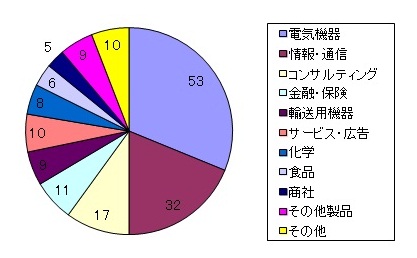 メーカ−、コンサル以外にも、情報・通信・金融・商社等、様々な業界へ就職しています。