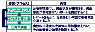 医療安全管理システムとは,医療業務上でミスが発生した際に情報を収集し,そのミスに対して対策を考え,その対策を実行する仕組みのことです.医療安全管理システムを以下の図に示します.